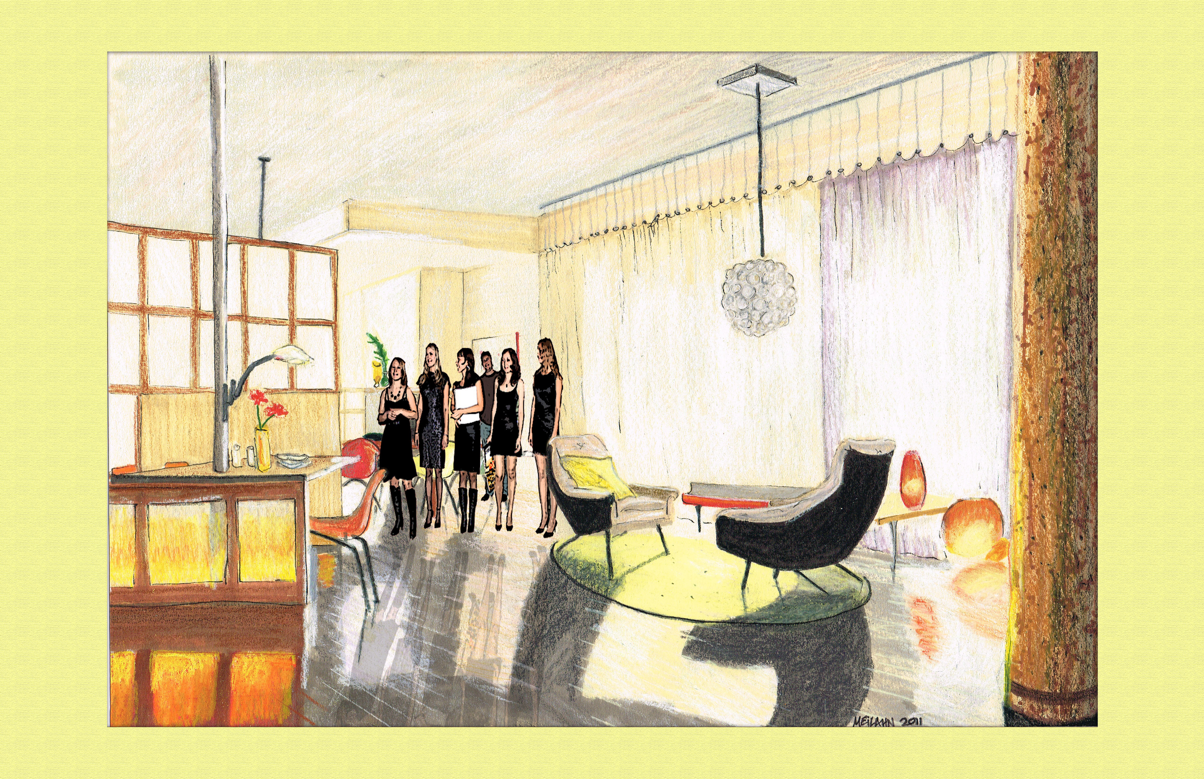 LIVING ROOM RENDERING, marker, ink, digital images, photoshop