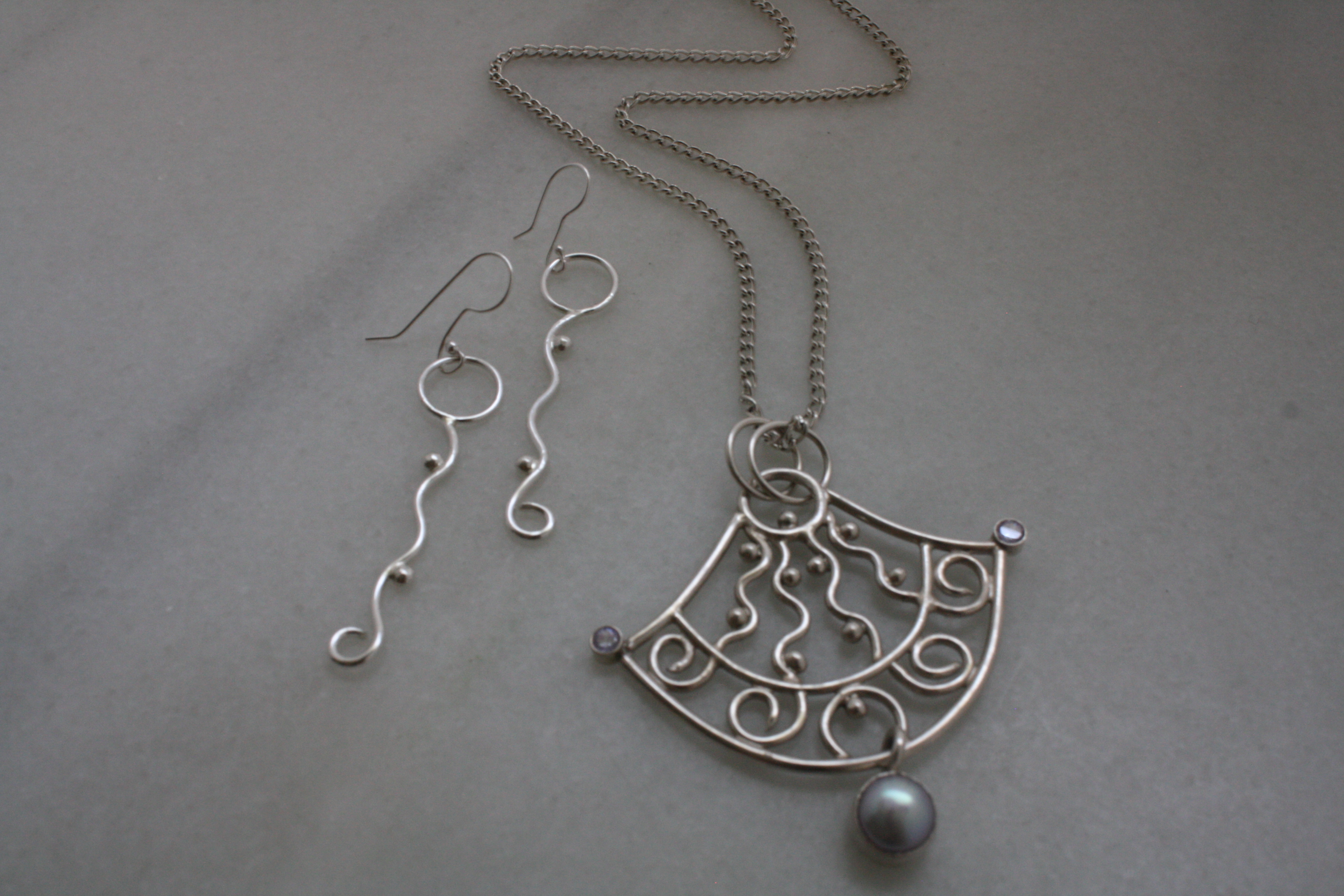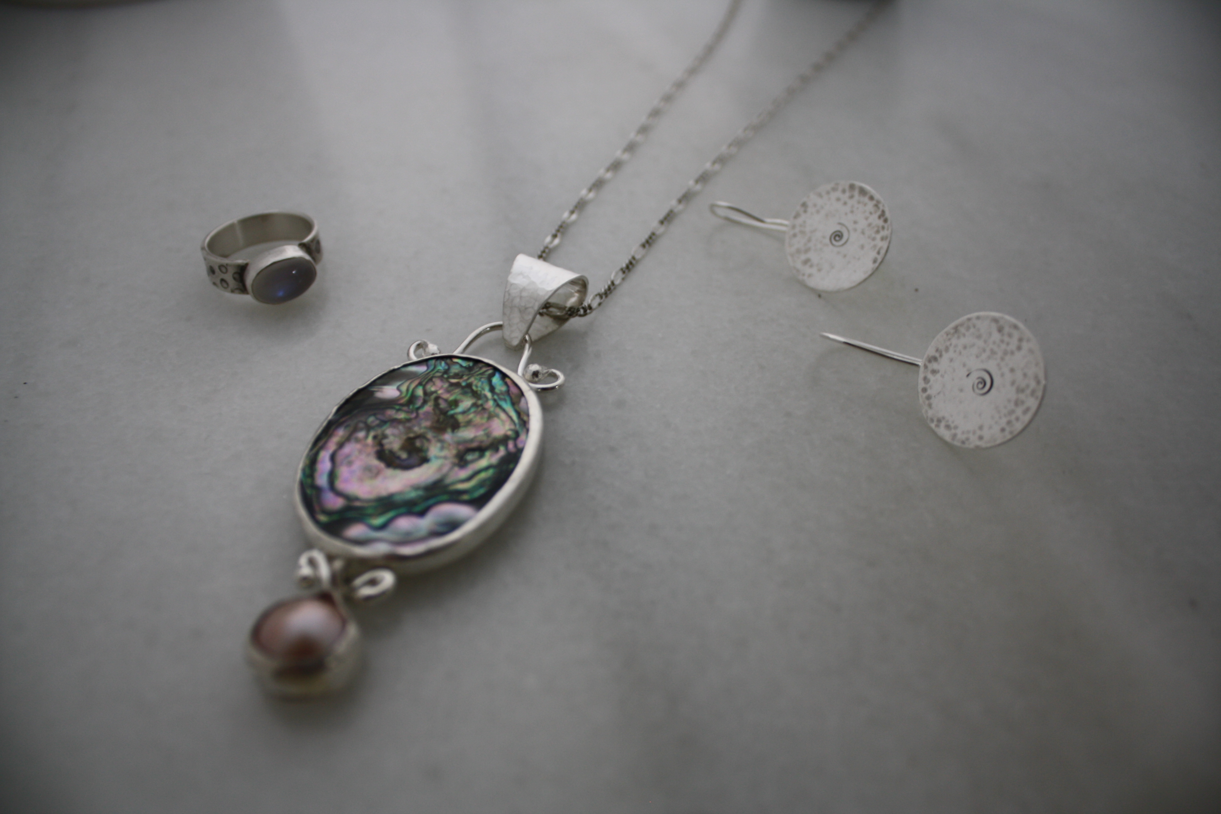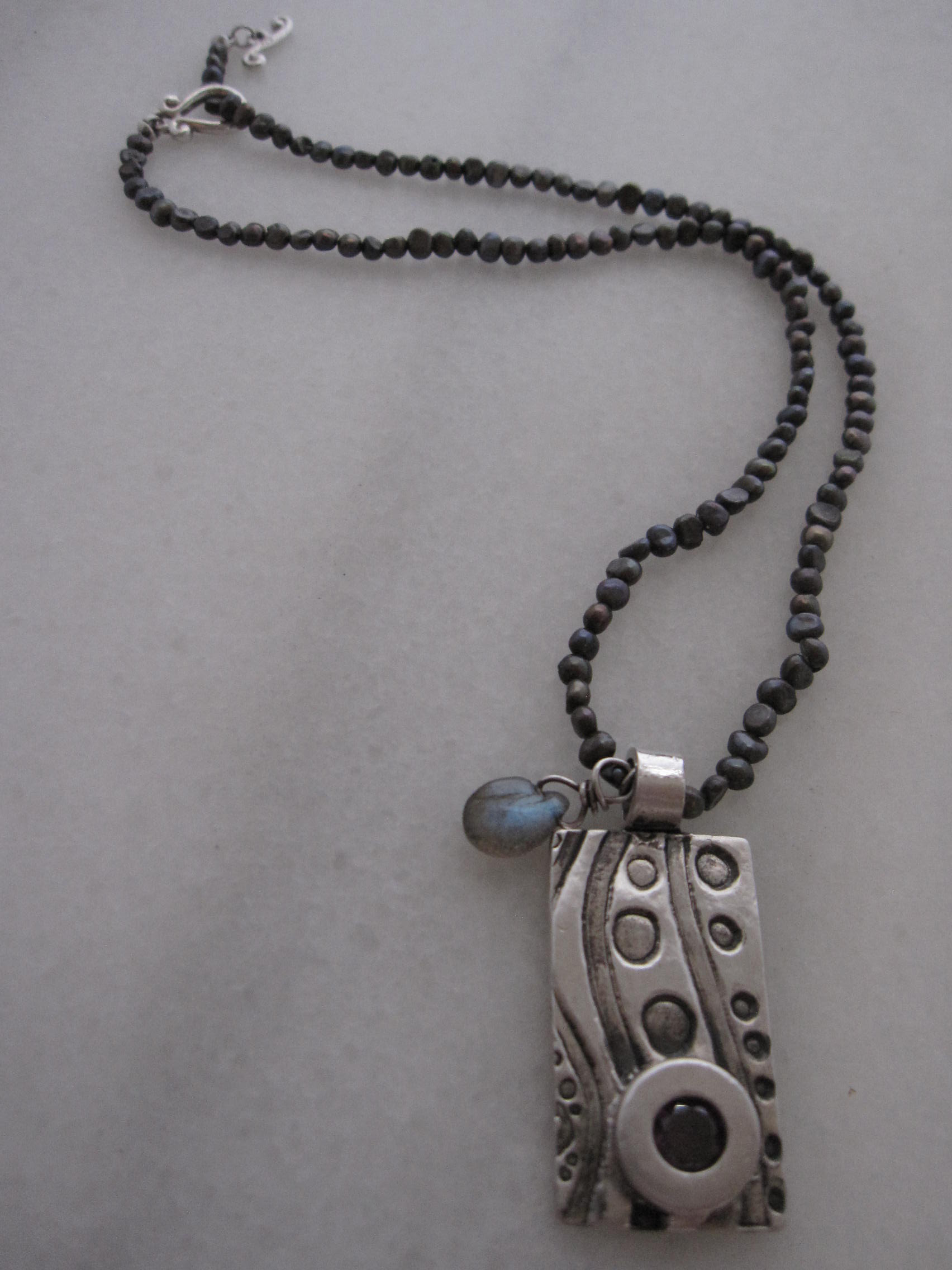 Fine Silver PMC, Grey Pearl, and Labradorite