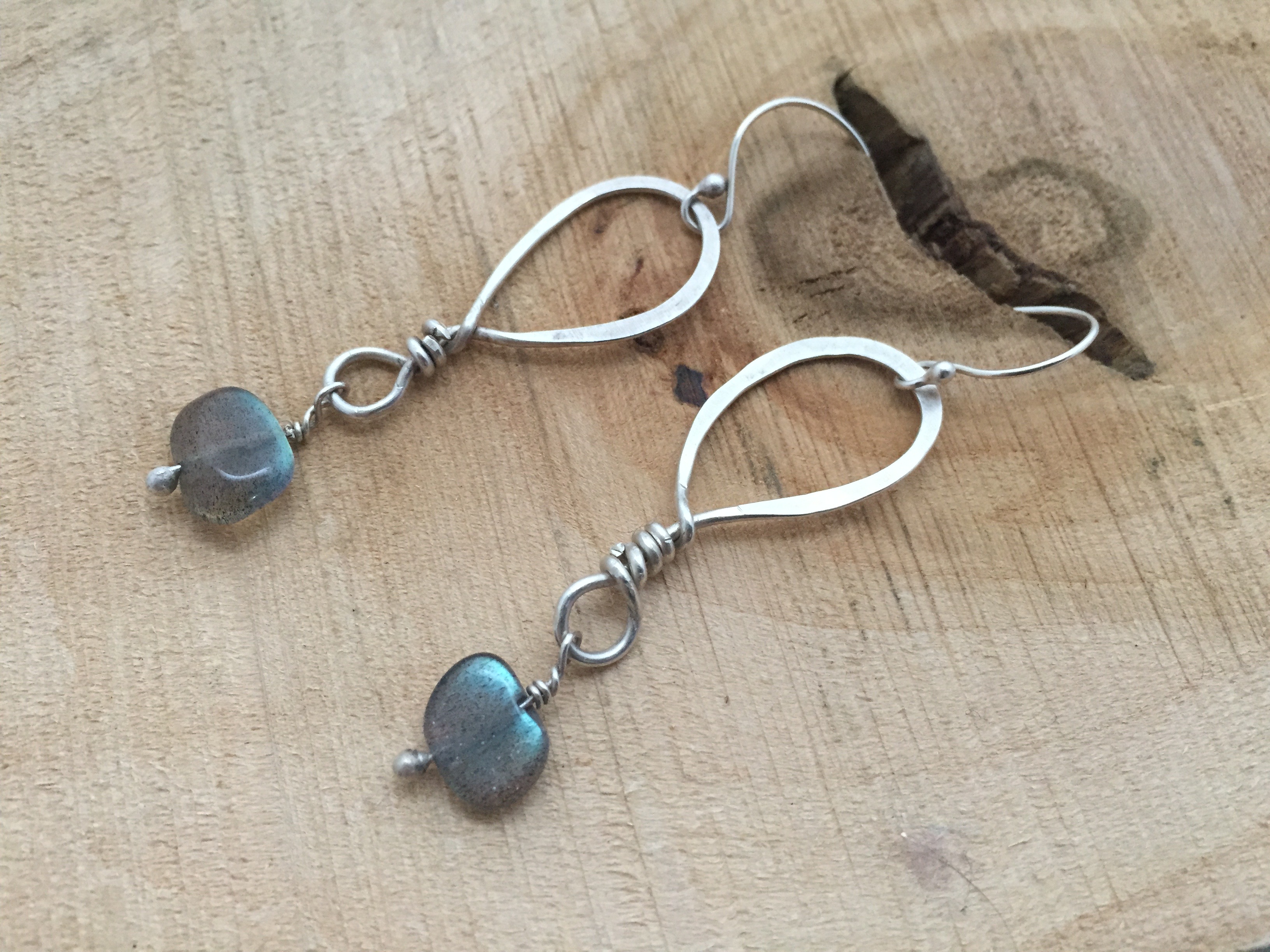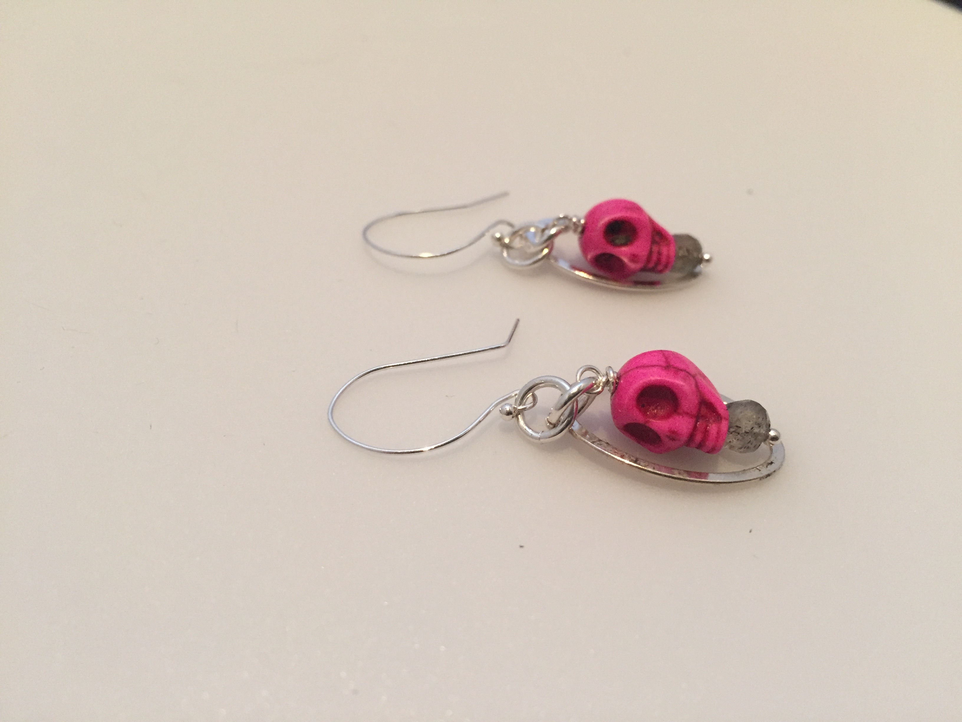 Earrings: Pink Howlite, Labradorite, Freshwater Pearl, Sterling Silver