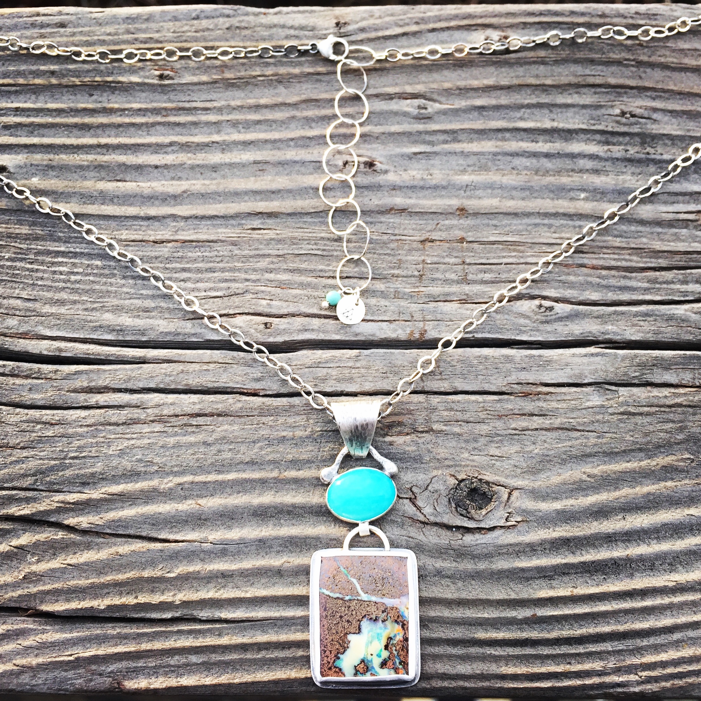 Pendant: Boulder Opal, Turquoise, Sterling Silver