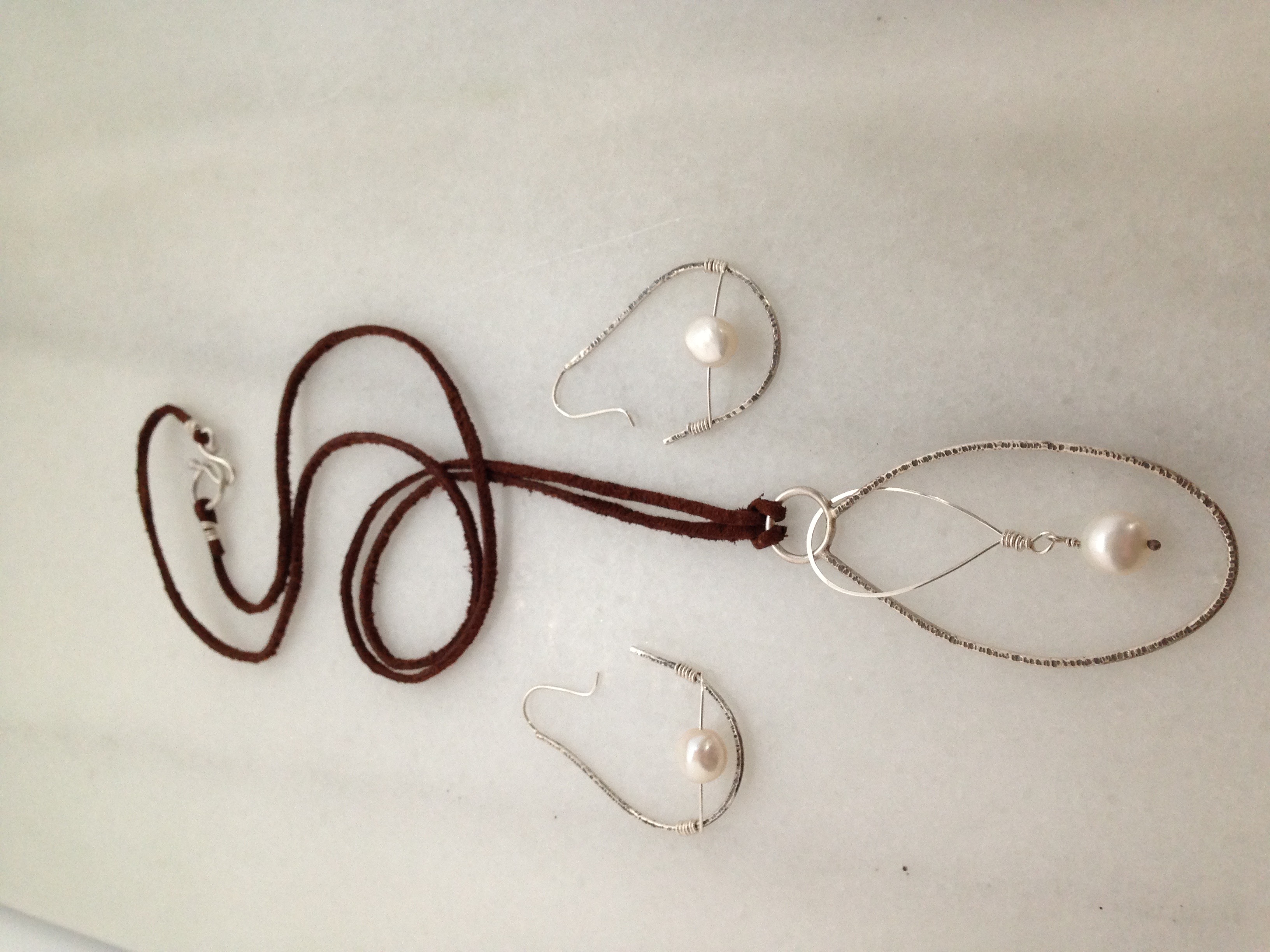 Pendant: Sterling Silver, Freshwater Pearl, Leather Cord