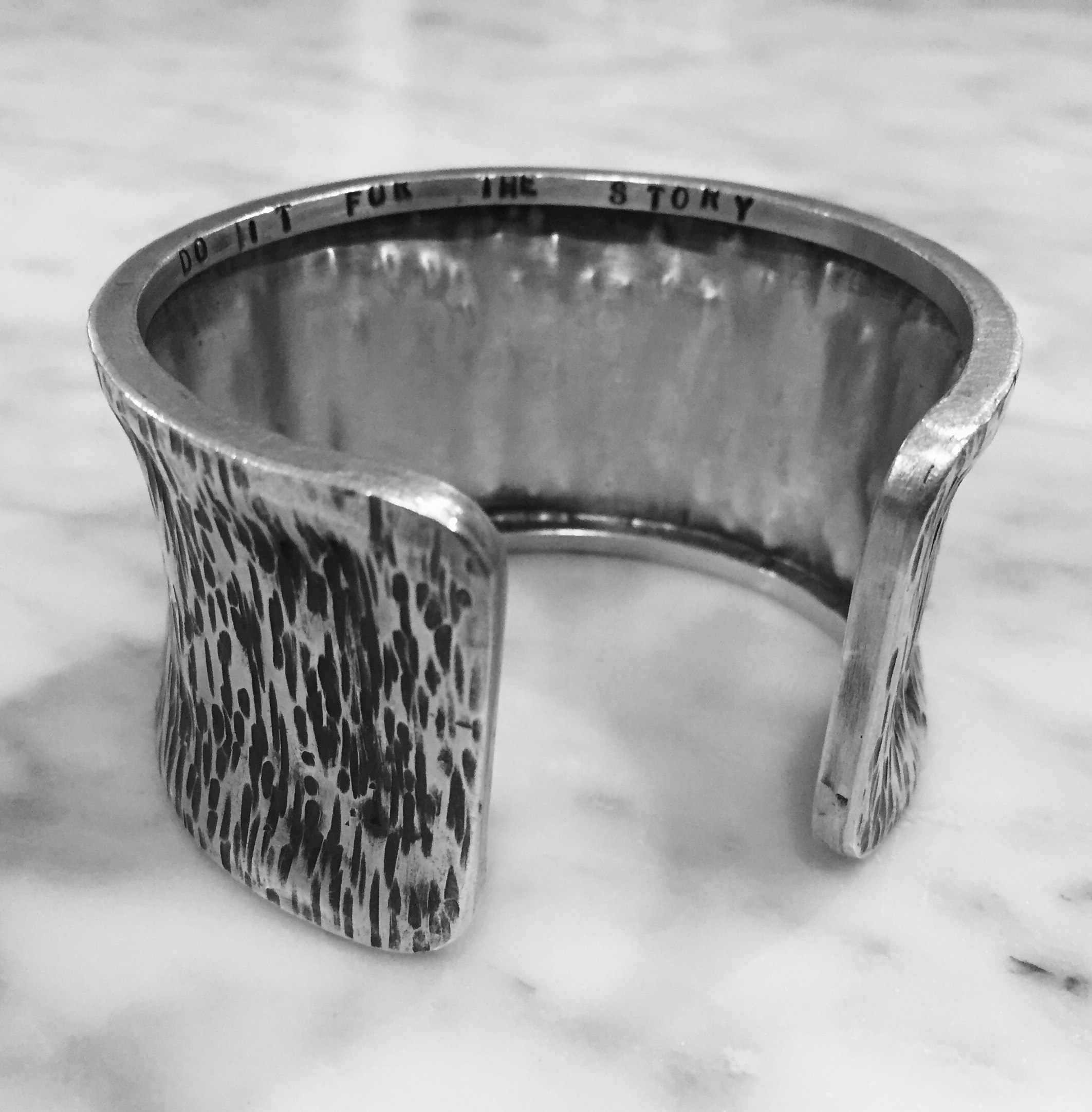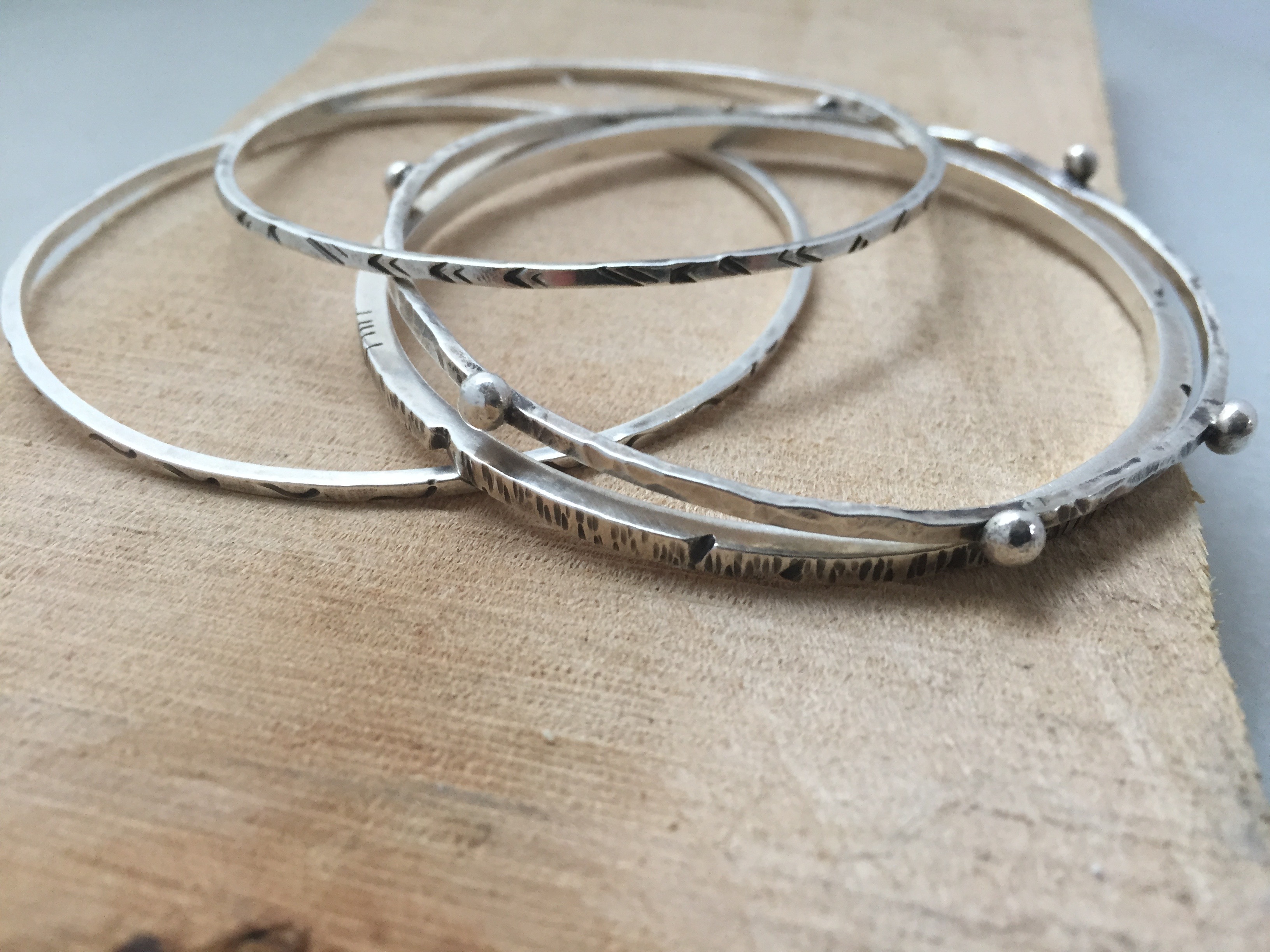 Bracelets: Fine Silver PMC heart bead, sterling button, beads, leather