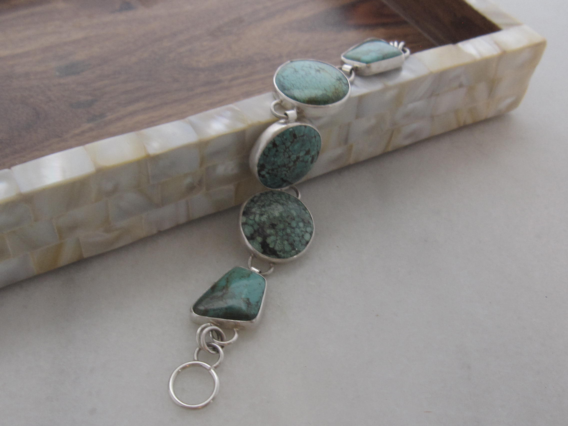 Bracelet: Chinese Turquoise Cabochon and Sterling Silver