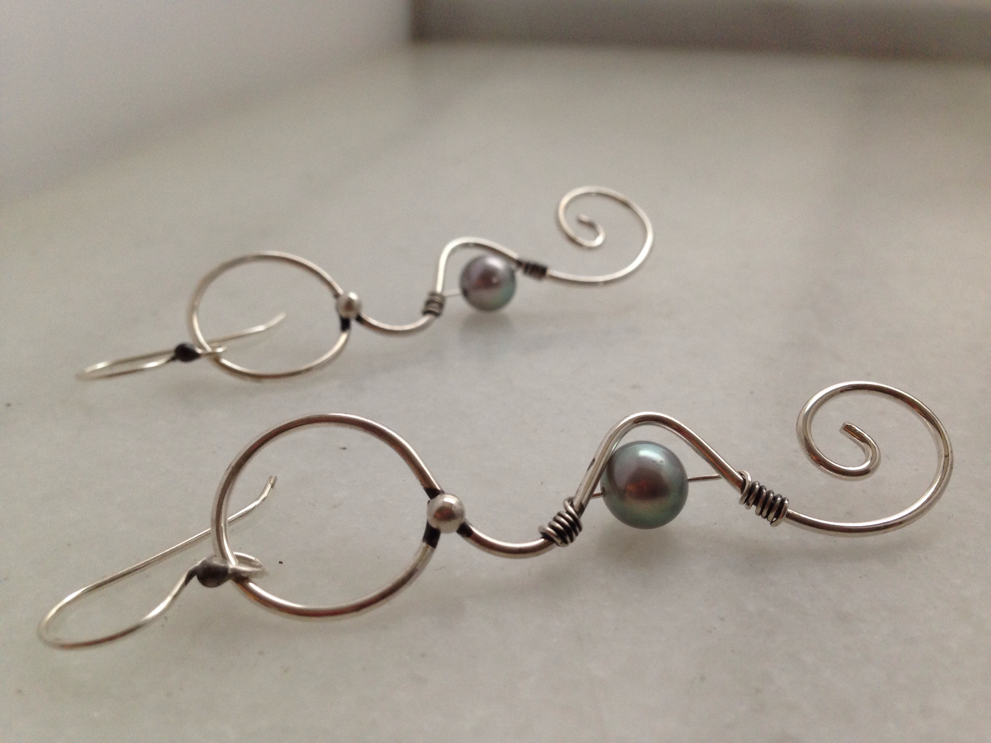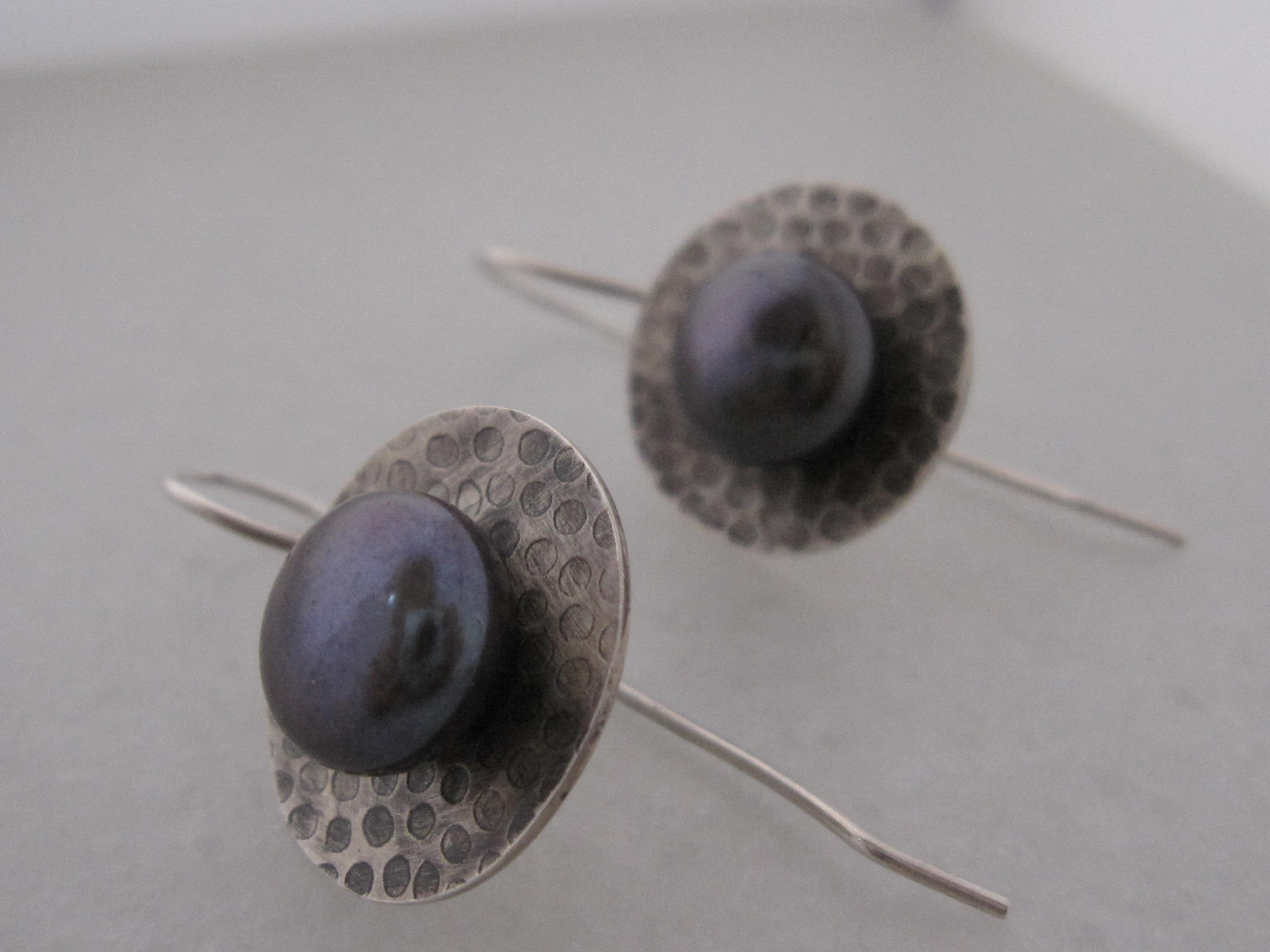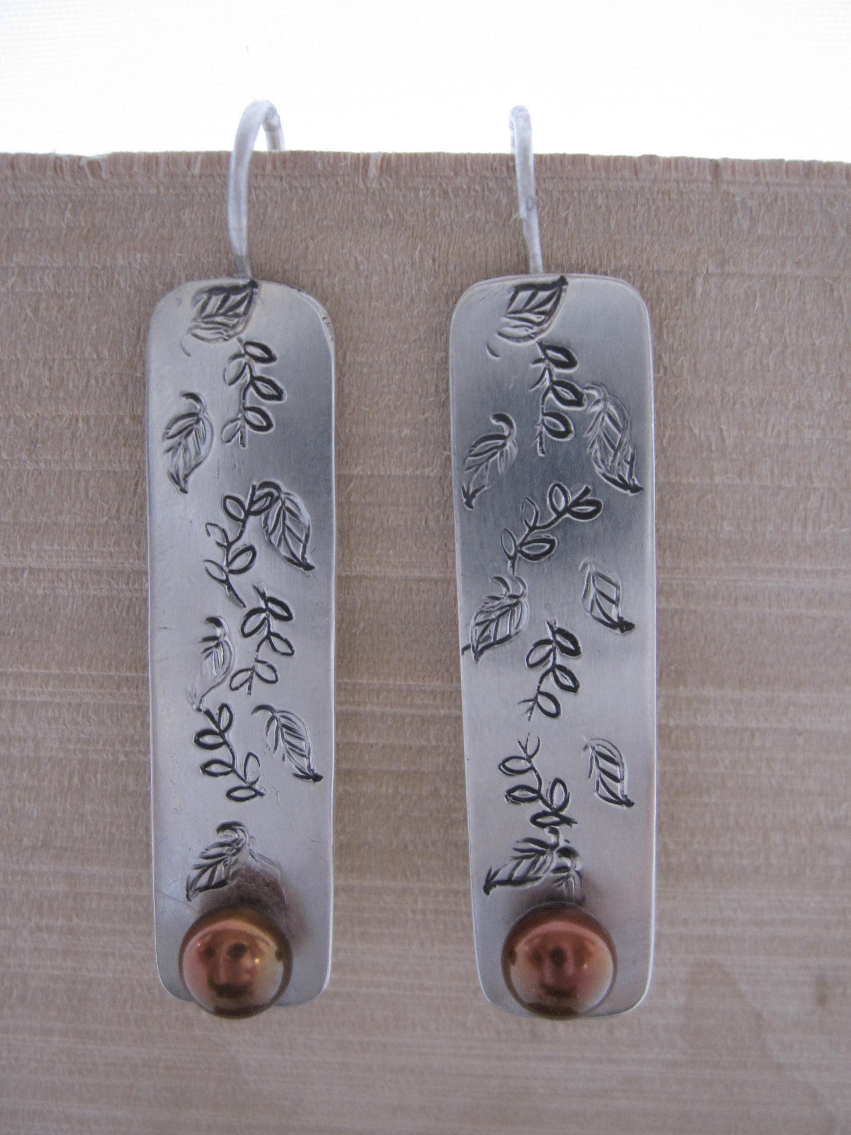 Falling Leaves Earrings: Brown Button Pearls and Sterling Silver