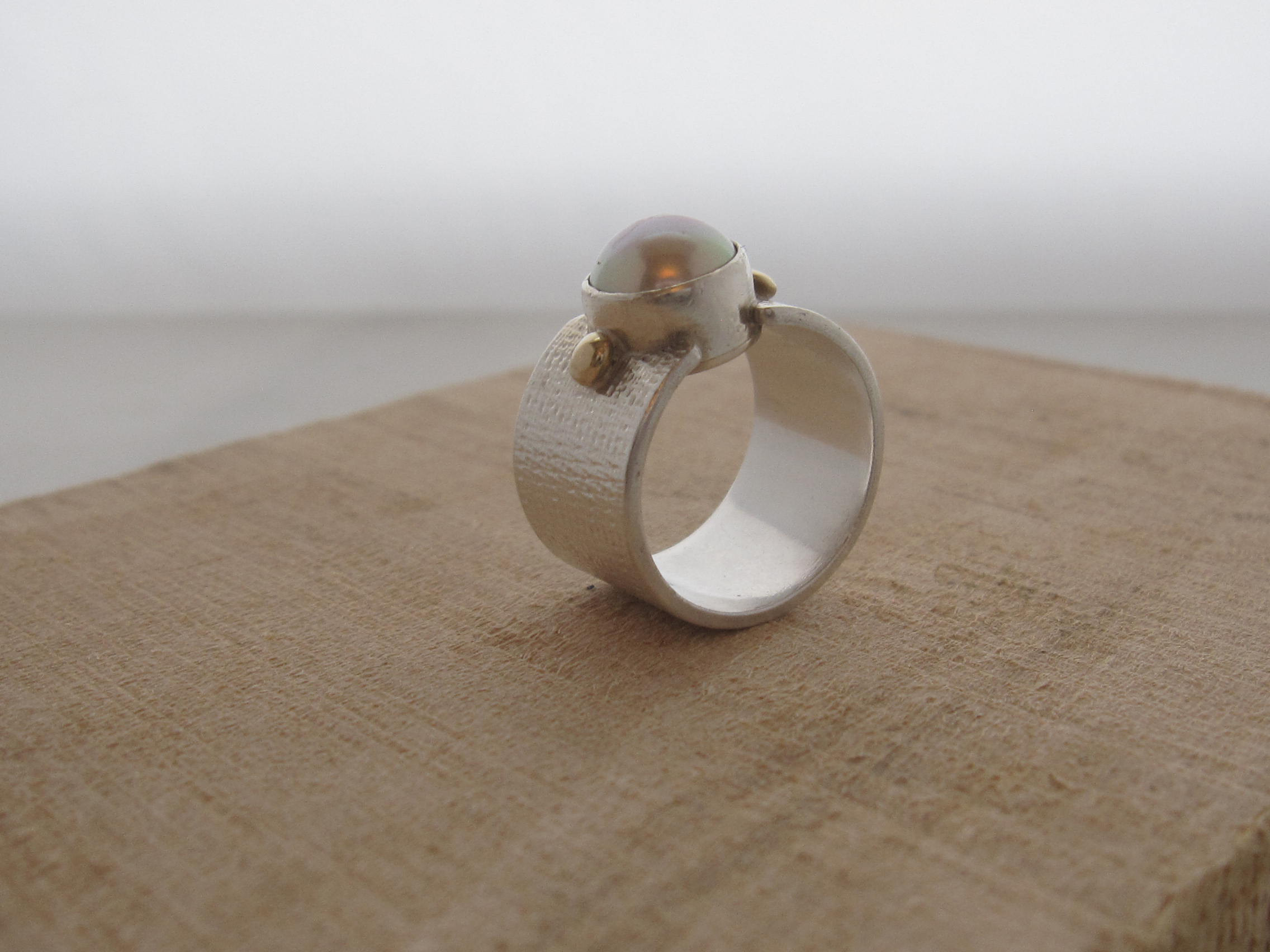 Ring: Pink Pearl, 14K gold and Sterling Silver